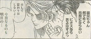 門倉さんの傷もさらりと登場。結構生々しいですね。髪の毛が生えてきたとしても、整髪料とかは当分使えなそう・・・